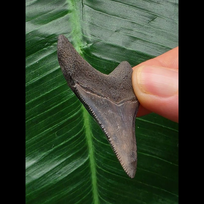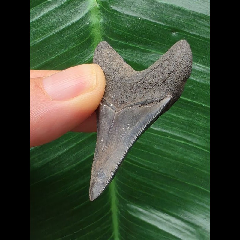 3,9 cm dunkler Zahn des Megalodon Der 3,9 cm große Zahn des Carcharocles Megalodon besitzt eine s..