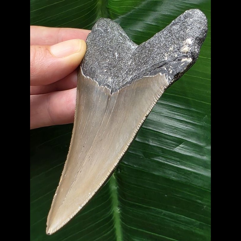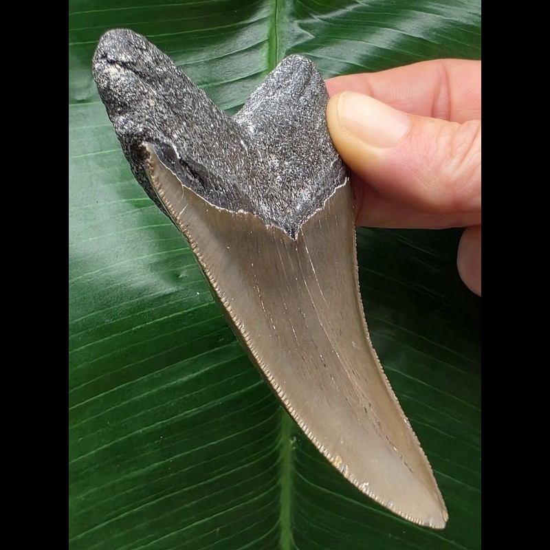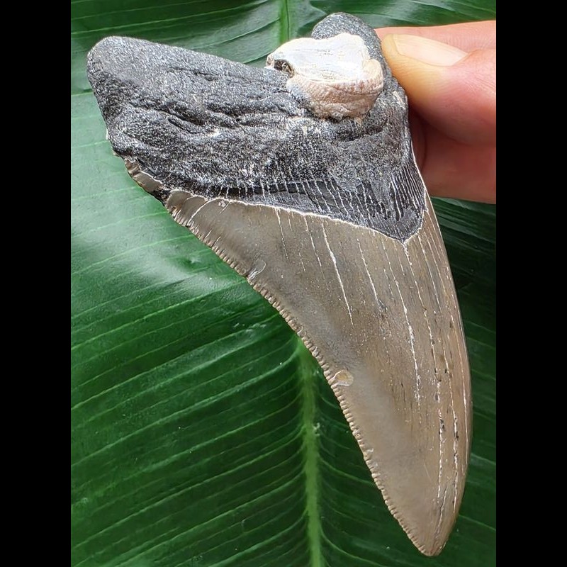 11,3 cm Zahn des Megalodon mit wuchtiger Wurzel